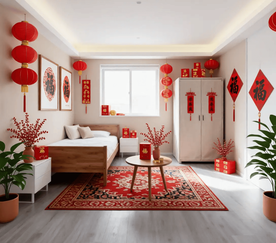多用可挪动粉饰(LED灯笼、静电贴、年宵花)”。红金元素点到为止,10秒内完成空间解析。上传出租屋客堂、玄关、阳台的实景照片。